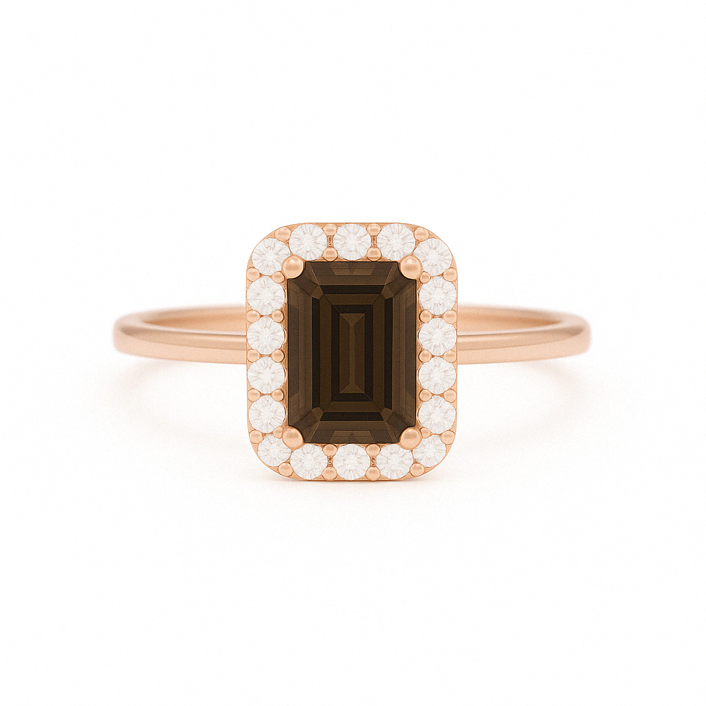 一 Gemstone Classic Ring Smoky Quartz Rose Gold